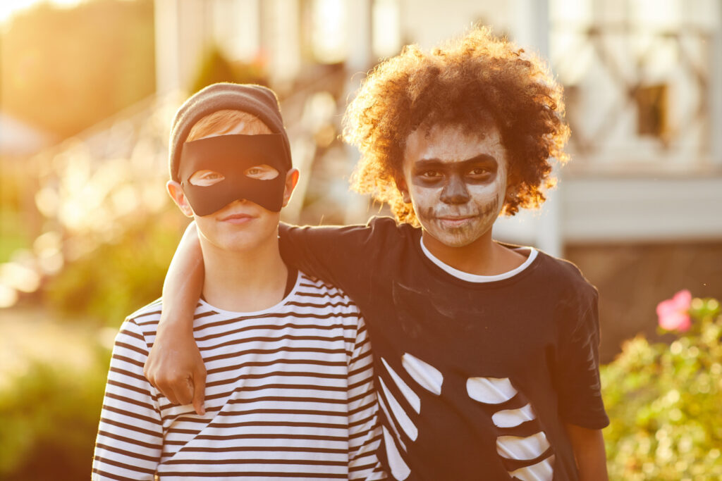 Use old white sheets or toilet paper (wrap lightly so it’s comfortable). Add a bit of face paint for extra spooky vibes—just be sure to keep it easy to move in for trick-or-treating.